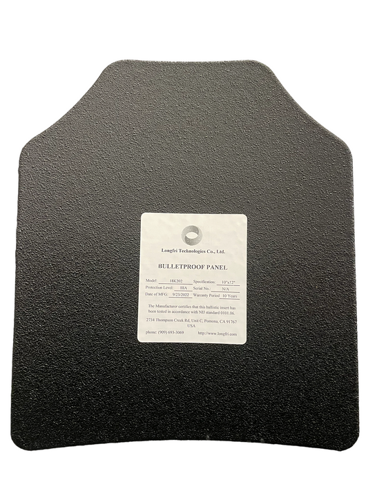 Level IIIA 8"x10" Shooter's Cut, Single Curve, Thin Ballistic Panel with Polyurea Coating