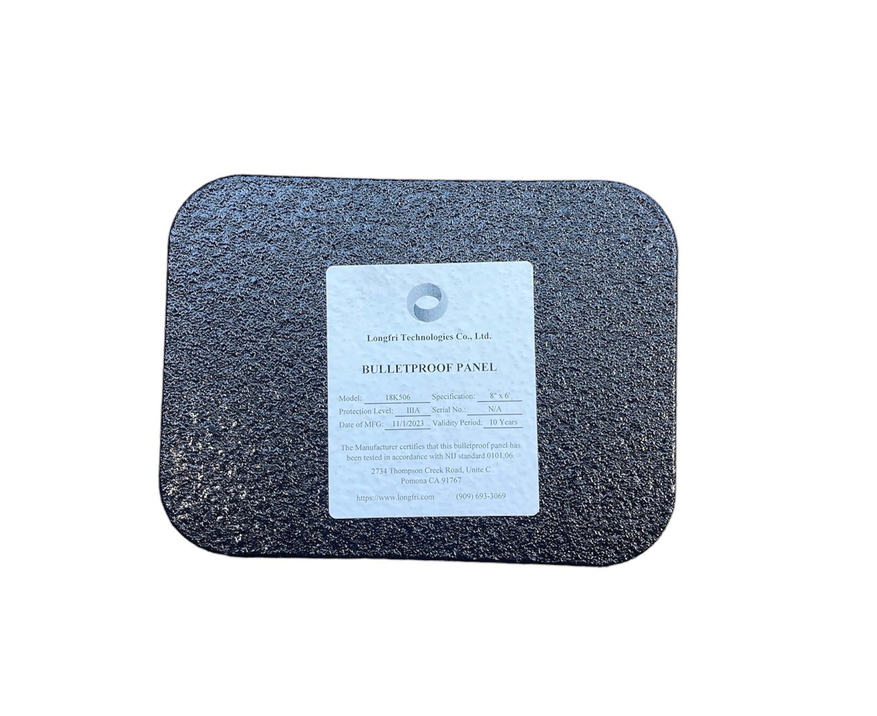 - The Manufacturer certifies that this bulletproof panel has been tested in accordance with NIJ Standard 0101.06.
